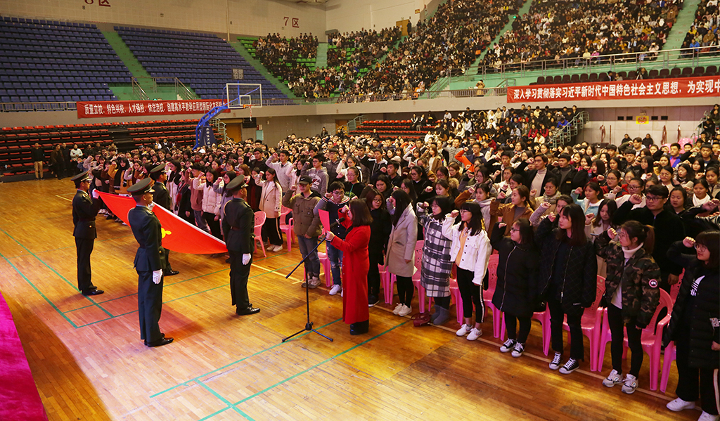 12月27日晚7点,365bet官方直营党校第38期入党积极分子结业典礼暨2017年下半年新党员宣誓大会在体育馆隆重举行。校党委书记柴世钦、副校长余孟辉、党委委员陈杏生、党委工作部部长李琼等领导出席了会议。各二级学院党总支书记、副书记,各直属支部书记,第38期入党积极分子培训班学员以及本学期发展的新党员和预备党员等三千余人参加了此次会议。会议由余孟辉副校长主持。