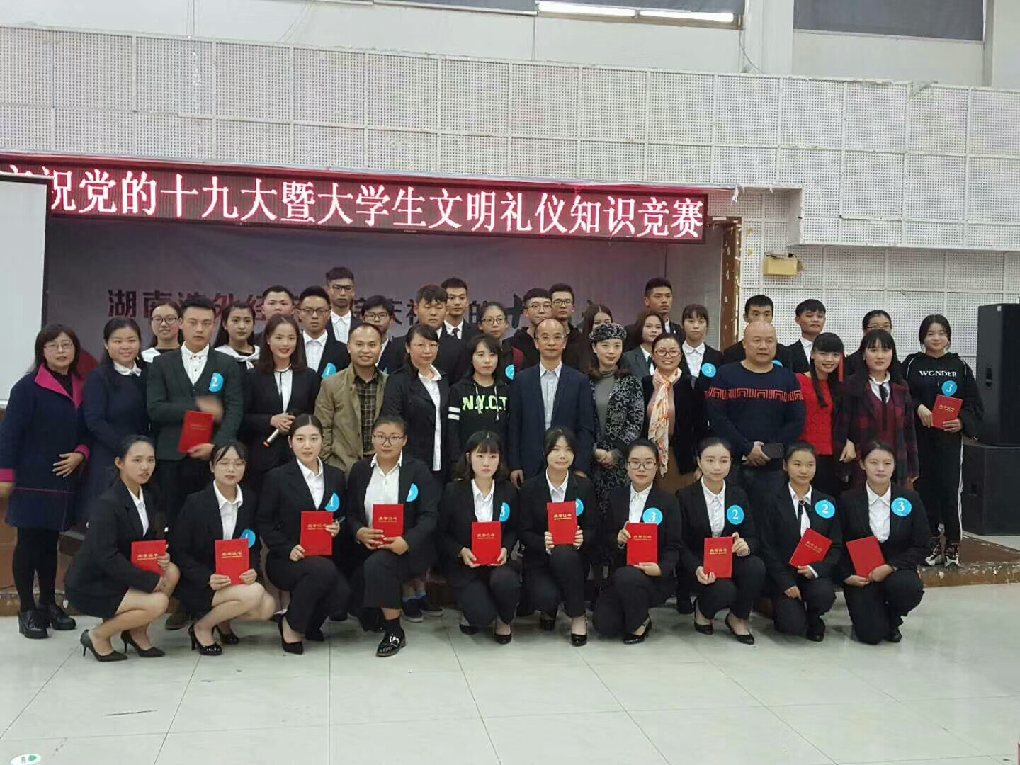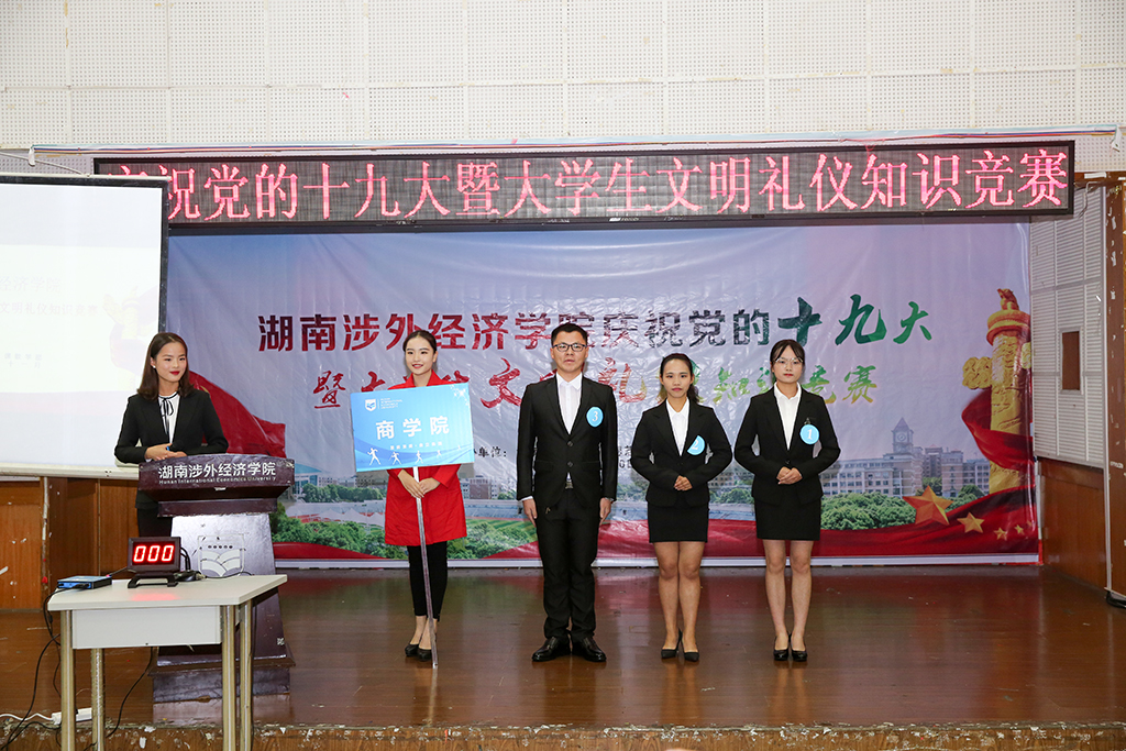 11月10日下午,由思政部主办的365bet官方直营庆祝党的十九大暨大学生文明礼仪知识竞赛在学术讲堂顺利举行。经过前期预赛,全校共有10支代表队进入了当天的决赛。党委教师工作部部长叶云霞、思政课部主任李故新、副主任刘淑娟,党委工作部余俊丽老师、教务处考试中心彭伊凡老师以及来自各个学院200余名学生共同到场观看了决赛。