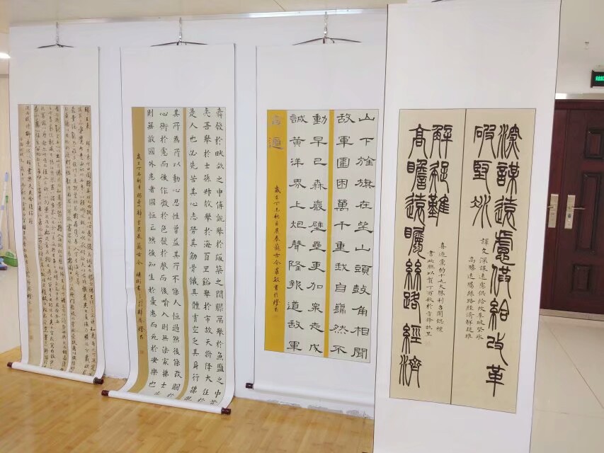 本次书法作品展旨在庆祝党的十九大胜利召开,提高学校的文化氛围,传承我国的传统文化。据了解,本次我校共有200余幅师生作品参与比赛,书法类型涵括了草书、篆书、楷书、硬笔、行书等多种门类,共展出49幅师生作品。展览现场,各位嘉宾与同学们一起观看、讨论作品,更有胡紫桂、钟全昌、易衡卫等老师现场挥毫创作作品。本次书法展展出11天,将于11月16日评选出优秀作品。