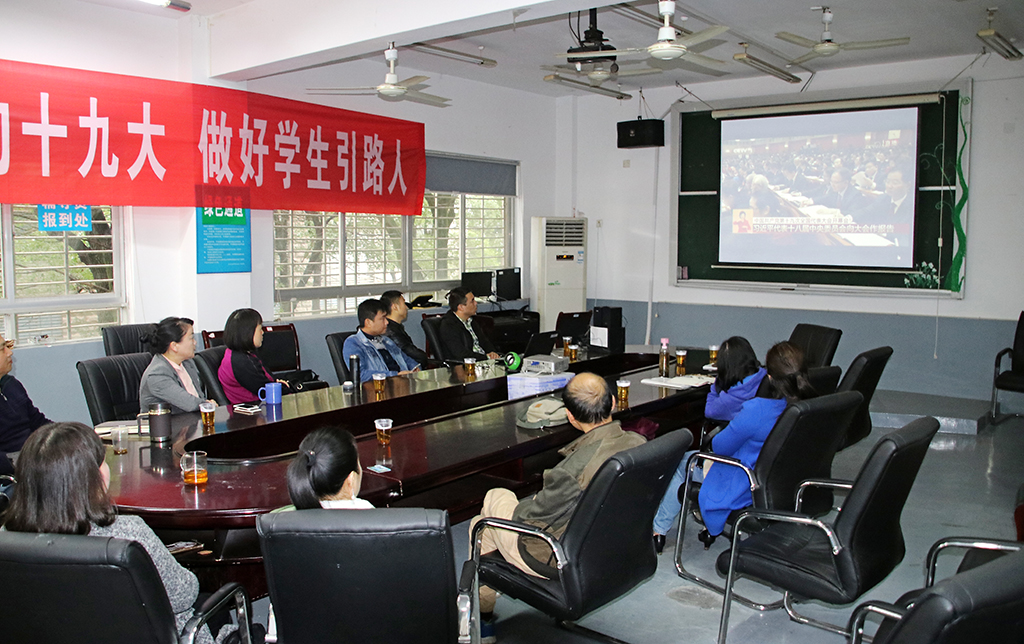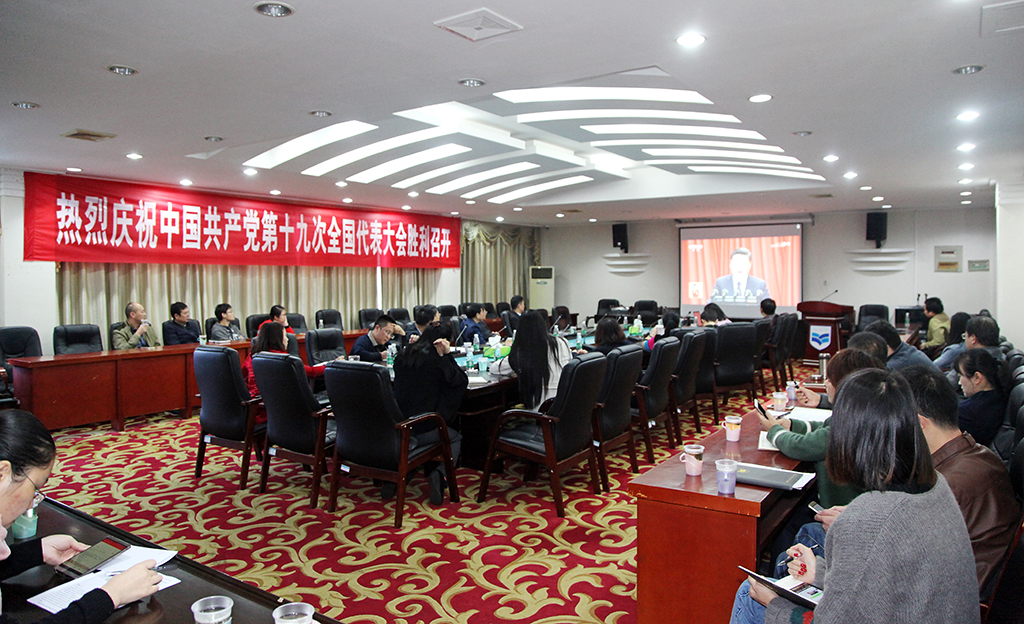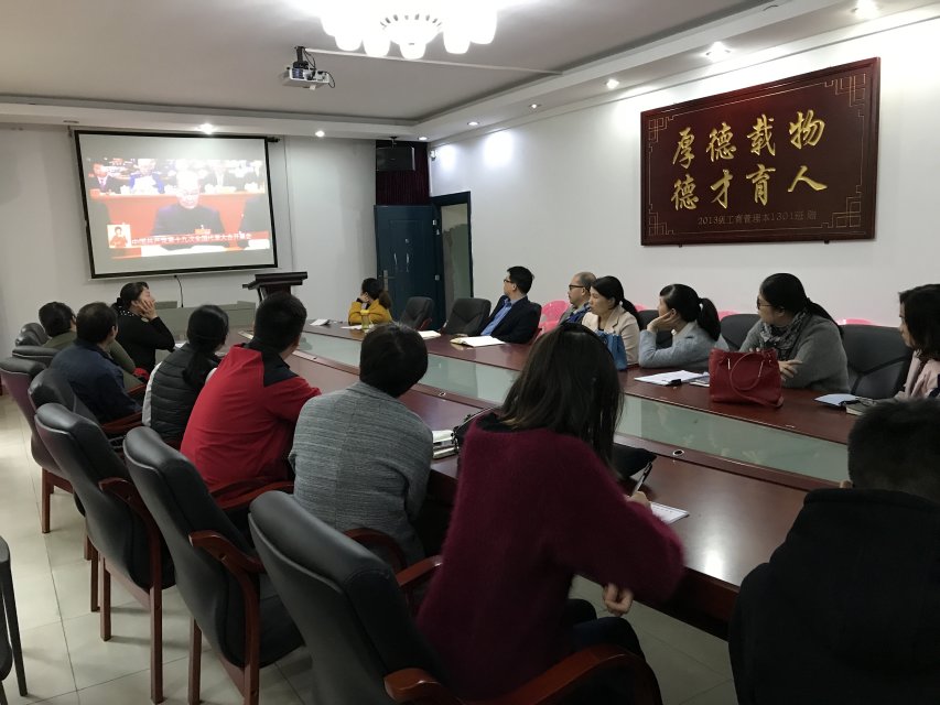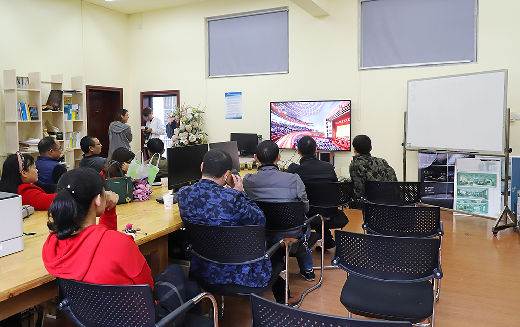 校办公楼科级以上干部集体收看十九大开幕会